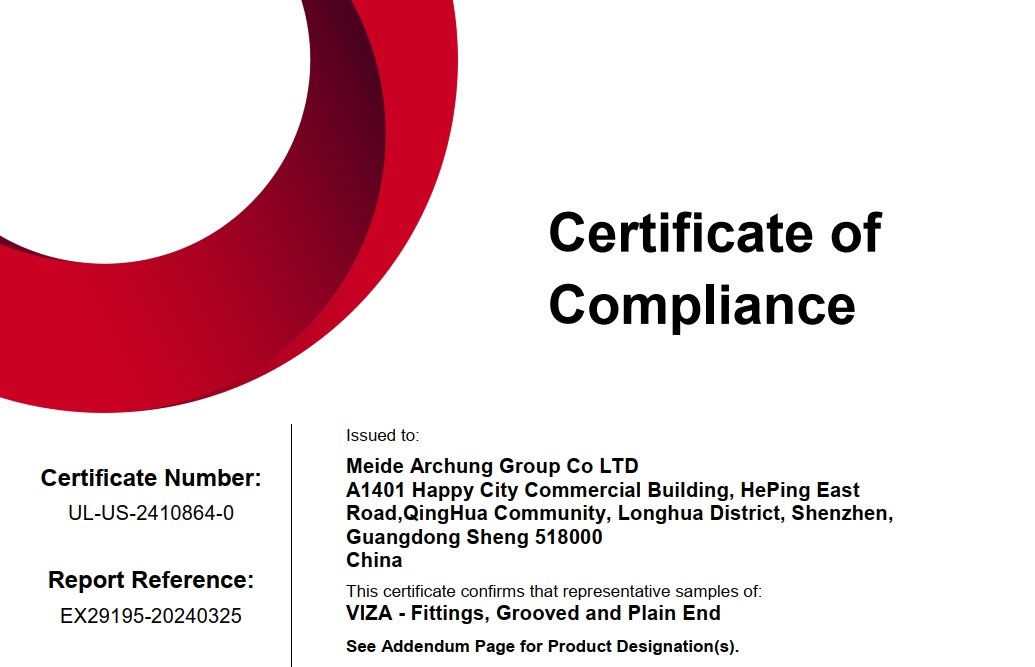 Meide Group got the UL certificate for VlZM -Fittings, Rubber Gasketed