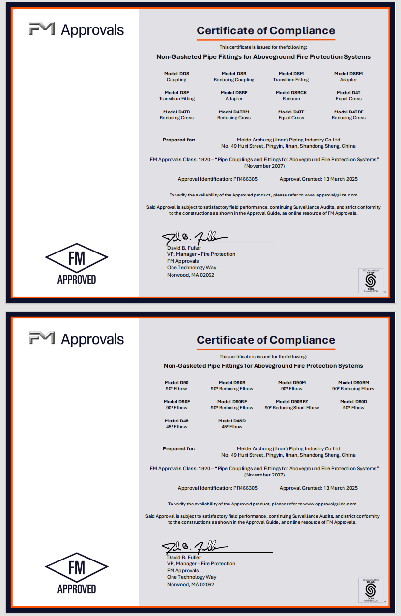 Meide Group's Carbon Steel M Type Press Fittings Have Passed FM Certification